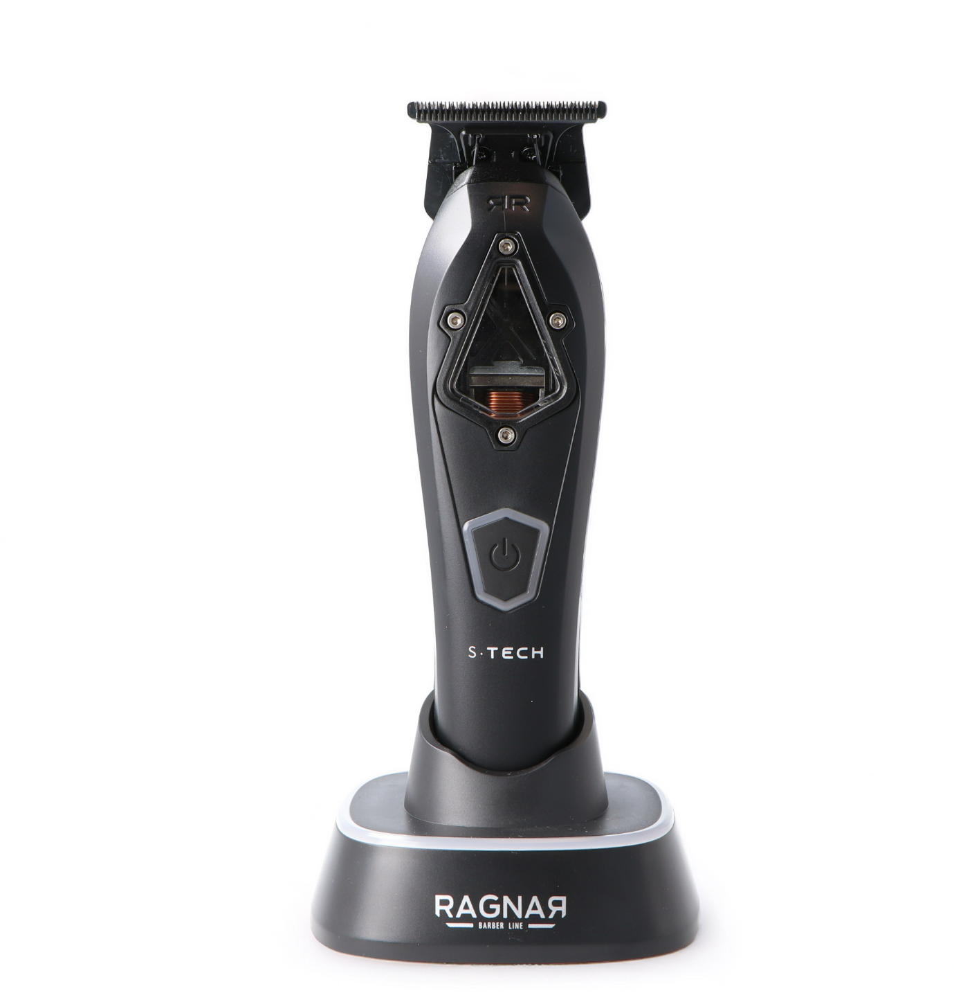 La máquina de retoque S-TECH de RAGNAR está diseñada para lograr acabados limpios y definidos con la máxima precisión. Su motor vectorial de alto rendimiento y sus cuchillas de carbono diamantadas permiten perfilar contornos, patillas y detalles con total control. Compacta, ligera e inalámbrica, ofrece una gran manejabilidad.